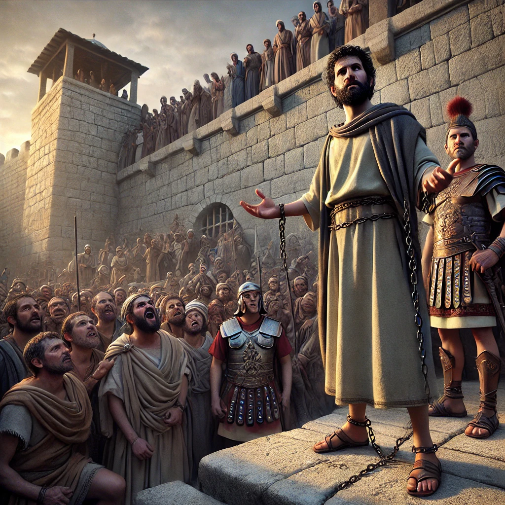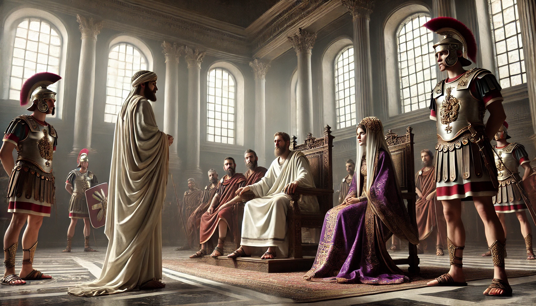 本文:使徒の働き(使徒言行録)24章 大祭司アナニヤと数名の長老は、弁護士テルティロを伴い エルサレムからカイサリアへ向かいました(距離にして約120km)。サンヘドリンでパウロを有罪にできなかった彼らは、ローマ総督フェリクスの権力を頼み、再び訴えを起...