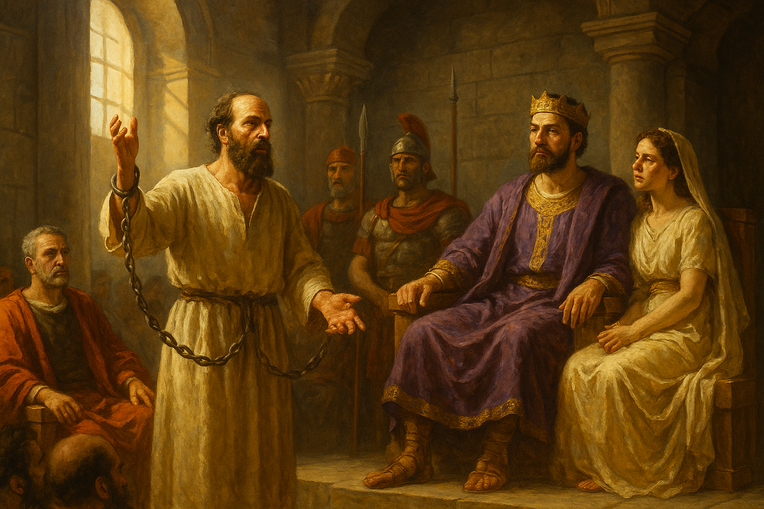 本文:使徒の働き(使徒言行録)26章 カイサリアに赴任したばかりのローマ総督フェストゥスは、エルサレムのユダヤ人指導者から訴えられたまま二年間拘束されているパウロの扱いに頭を抱えていました。罪状をまとめられないままローマ皇帝に送致しなければならな...